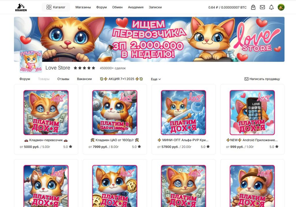 Тысячи магазинов по всем категориям, фильтры по городу/весу/рейтингу/автозакладу, быстрая загрузка страниц, мобильная адаптация — Kraken остаётся одним из самых юзабельных маркетплейсов в даркнете, несмотря на то, что работает исключительно через Tor Kraken.